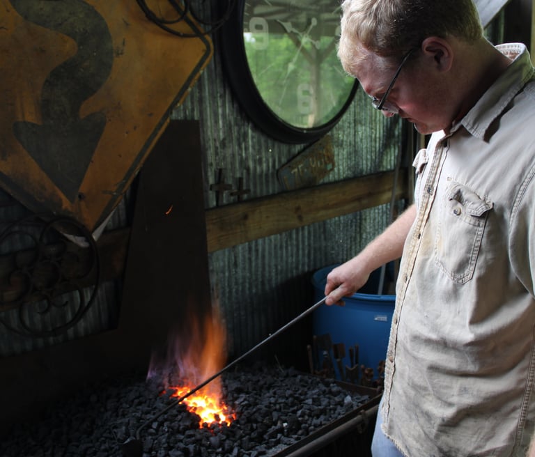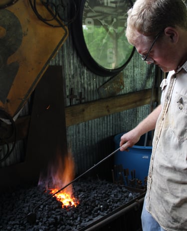 "I started blacksmithing at fourteen and quickly became enamored with the process of making. Learning new techniques and striving for improvement, drove me forward. Throughout high school and college, I forged tools for blacksmiths, knife makers, and farriers. During this time I found work making rounding hammers, forging hammer tongs and teaching classes."