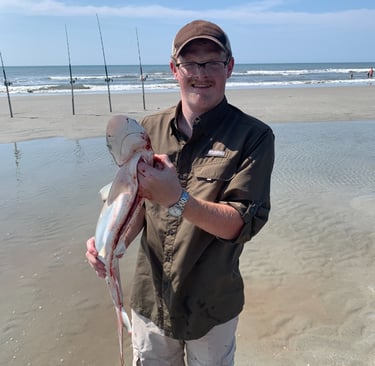 My first foray into shark fishing was on a whim. I was planting sweet sorghum on a Thursday when my college roommate called. The phone call went something like, "Hey Pink you wanna go shark fishing this Saturday ?". To which I responded "I'll pick up the boys and meet you in Charleston tomorrow night". On Saturday our party went on to catch eight Atlantic sharpnose sharks and a blacktip AKA spinner shark. We retained three of the Atlantic sharpnose, and with the instruction of our charter, removed their inards and bled them. Retaining sharks is looked down upon by many. For an entire swath of folks I expect that their perception of retaining sharks for consumption is not to dissimilar to the misinformed perception that I had. It is true that some shark species have been the target of over harvest resulting in population decline but, many fisheries and species populations represent appropriate and effective management. Some fisherman take issue with the odor and the resulting preparation that many shark species require. Without a urinary tract species like Atlantic Sharpnose excret liquid waste through their flesh and skin. The Ammonia smell that this causes can be easily alleviated by thorough bleeding, icing, and the soaking of the flesh.